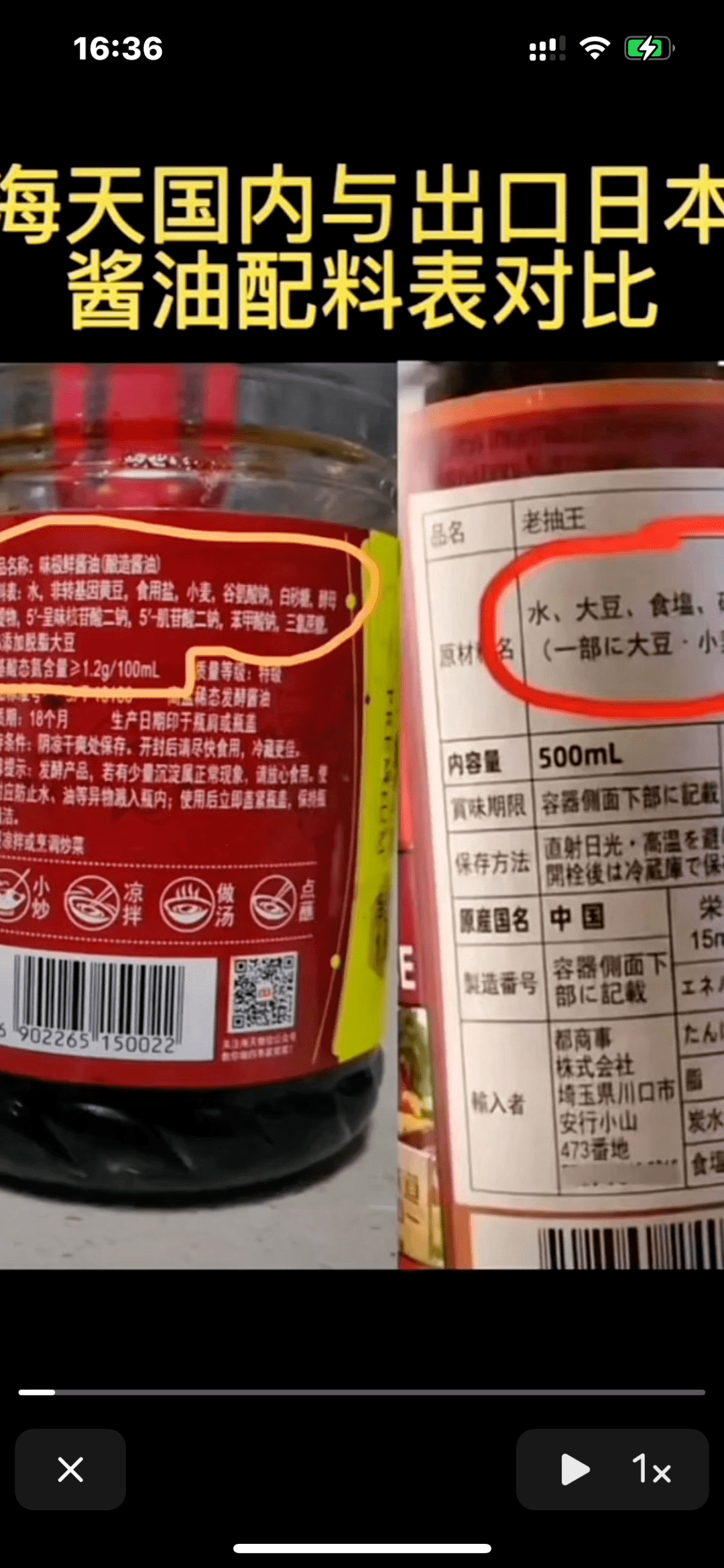 近日,老牌调味料企业海天味业被指国内国外“双重标准”。有网友晒图表示,日本售卖的海天老抽王配料表只有水、大豆和食盐,而国内售卖的“味极鲜”却包含谷氨酸钠(味精的主要成分)、5’-呈味核苷酸二钠等多种添加剂,甚至还有苯甲酸钠这一臭名昭著的致癌防腐剂。